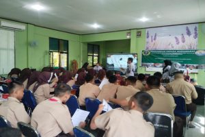 Kegiatan dimulai dengan pemaparan materi mengenai bioenterpreneur, pemanfaatan potensi hayati lokal, hingga strategi pemasaran produk kreatif. Setelah sesi teori, siswa melakukan praktik langsung mulai dari pemilihan daun, proses pounding dan steaming, hingga tahap finishing produk ecoprint. Suasana praktik terlihat hidup dengan siswa yang antusias mencoba teknik baru tersebut.