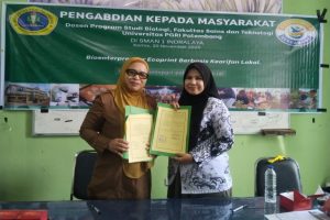 Enam dosen Program Studi Biologi Fakultas Sains dan Teknologi (SAINTEK) Universitas PGRI Palembang melaksanakan kegiatan Pengabdian kepada Masyarakat (PkM) di SMA Negeri 1 Indralaya dengan fokus memperkenalkan konsep Bioenterpreneur Ecoprint berbasis kearifan lokal. Kegiatan ini turut melibatkan Ketua HMPS Biologi Sadianto dan Gubernur BEM SAINTEK Ardi Ali.