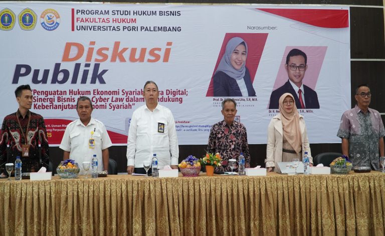 Program Studi Hukum Bisnis Fakultas Hukum Universitas PGRI Palembang menggelar Diskusi Publik 2025 bertema “Penguatan Hukum Ekonomi Syariah di Era Digital: Sinergi Bisnis dan Cyber Law dalam Mendukung Keberlanjutan Ekonomi Syariah”, Rabu (29/10/2025).