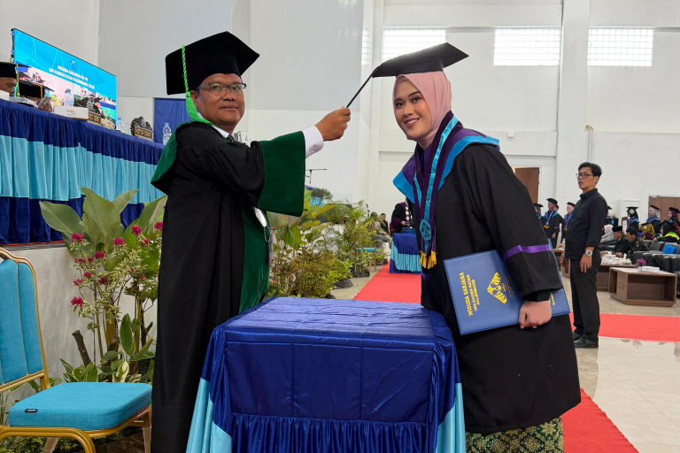 “Wisuda hari ini bukan sekadar seremoni akademik, tetapi menjadi titik awal pengabdian saudara di tengah masyarakat, bangsa, dan negara,” ujar Rektor.