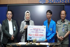 Dalam kesempatan tersebut, Bank Sumsel Babel juga menyerahkan tabungan penghargaan kepada Muhammad Rasyid Ridho, mahasiswa PGSD peraih IPK tertinggi.